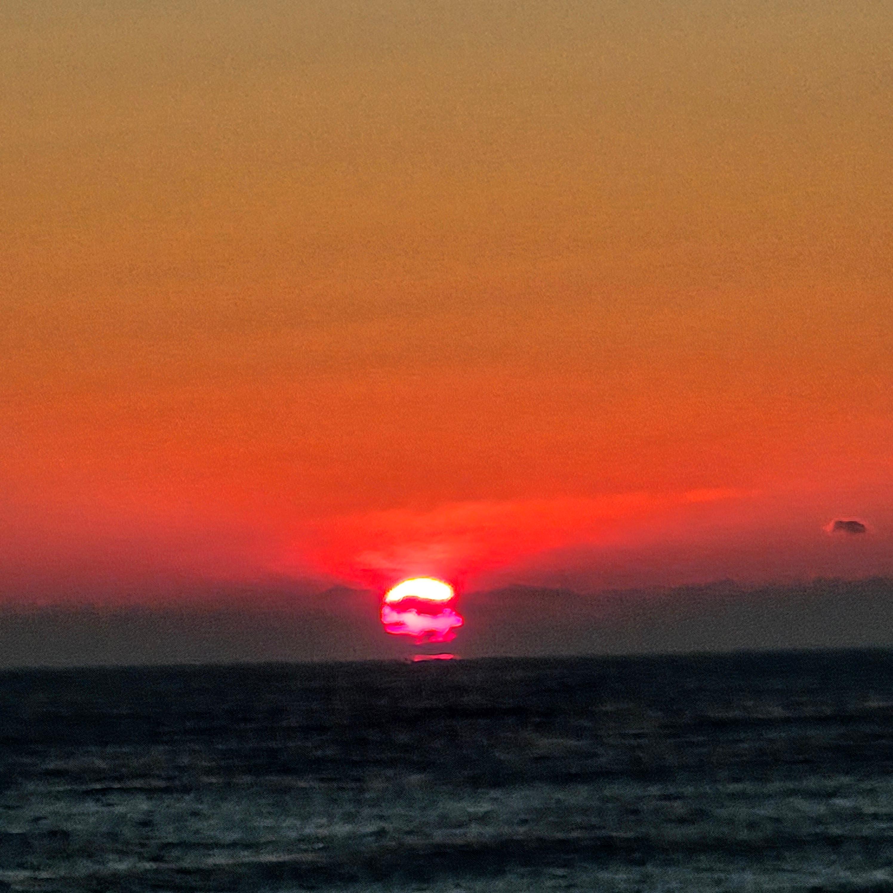 조금 기다리니까 저 멀리서 해가 뜨는 게 보여요. 해가 진짜 크더라고요.