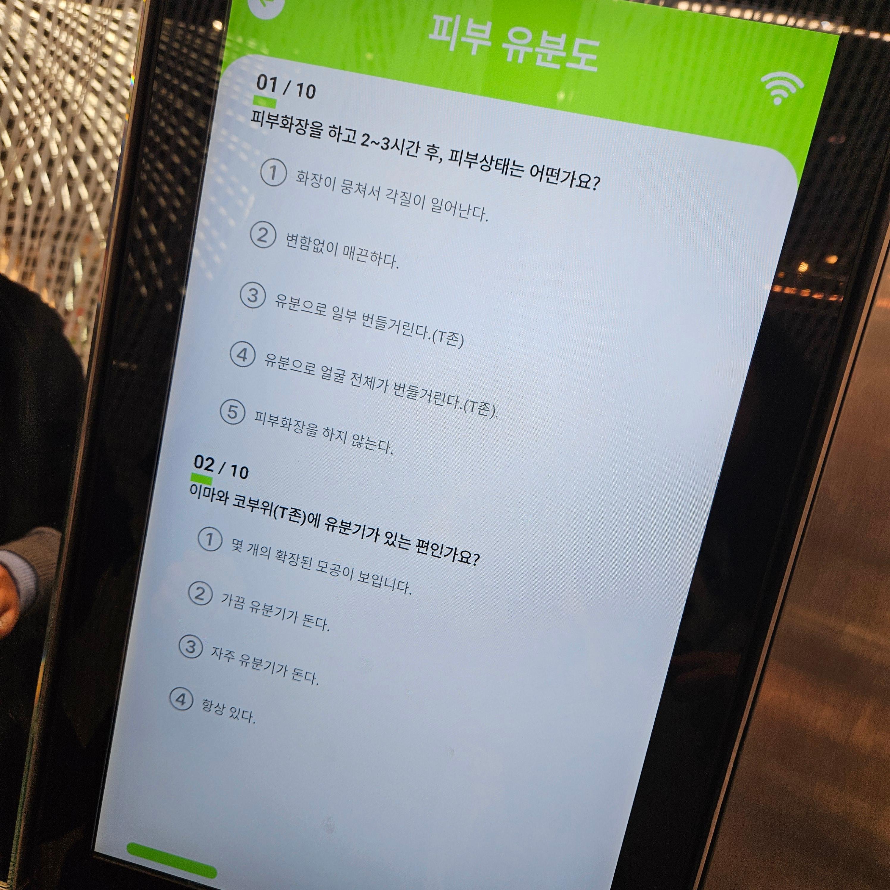 촬영이 끝나고 간단한 질문에 답변을 하고 나면 피부 진단 테스트가 완료돼요.