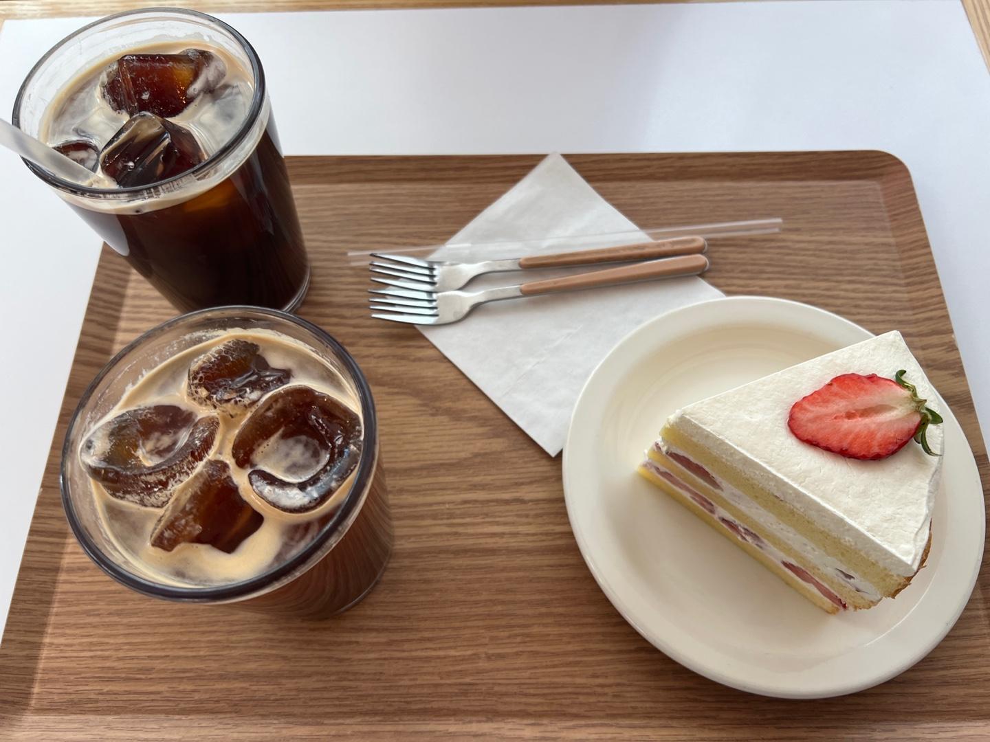 우유 크림 딸기 케이크로 결정했어요. 커피는 아메리카노! 500원 추가하면 디카페인으로 변경도 가능하더라고요.