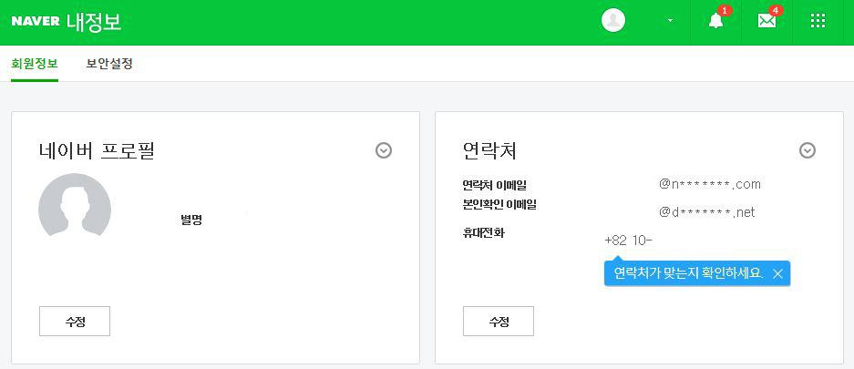 혹시 다른 사람이 로그인 시도를 하여 정보를 수정했다면 내 정보 중에서 어떤 것을 수정했는지