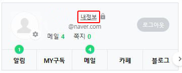 로그인하면 로그인 창안에서 닉네임 옆에 내 정보가 있습니다. 눌러봅시다.