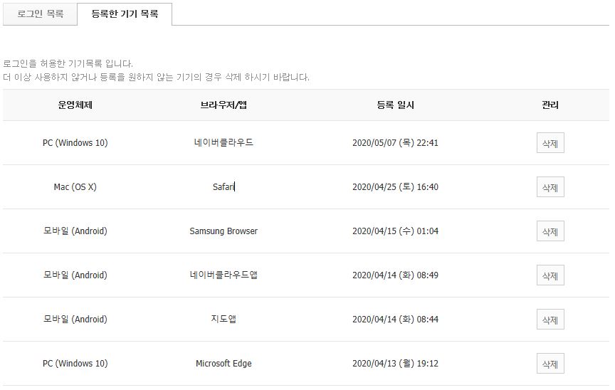 사용하지 않는 기기가 보이면 바로 삭제해야겠죠?