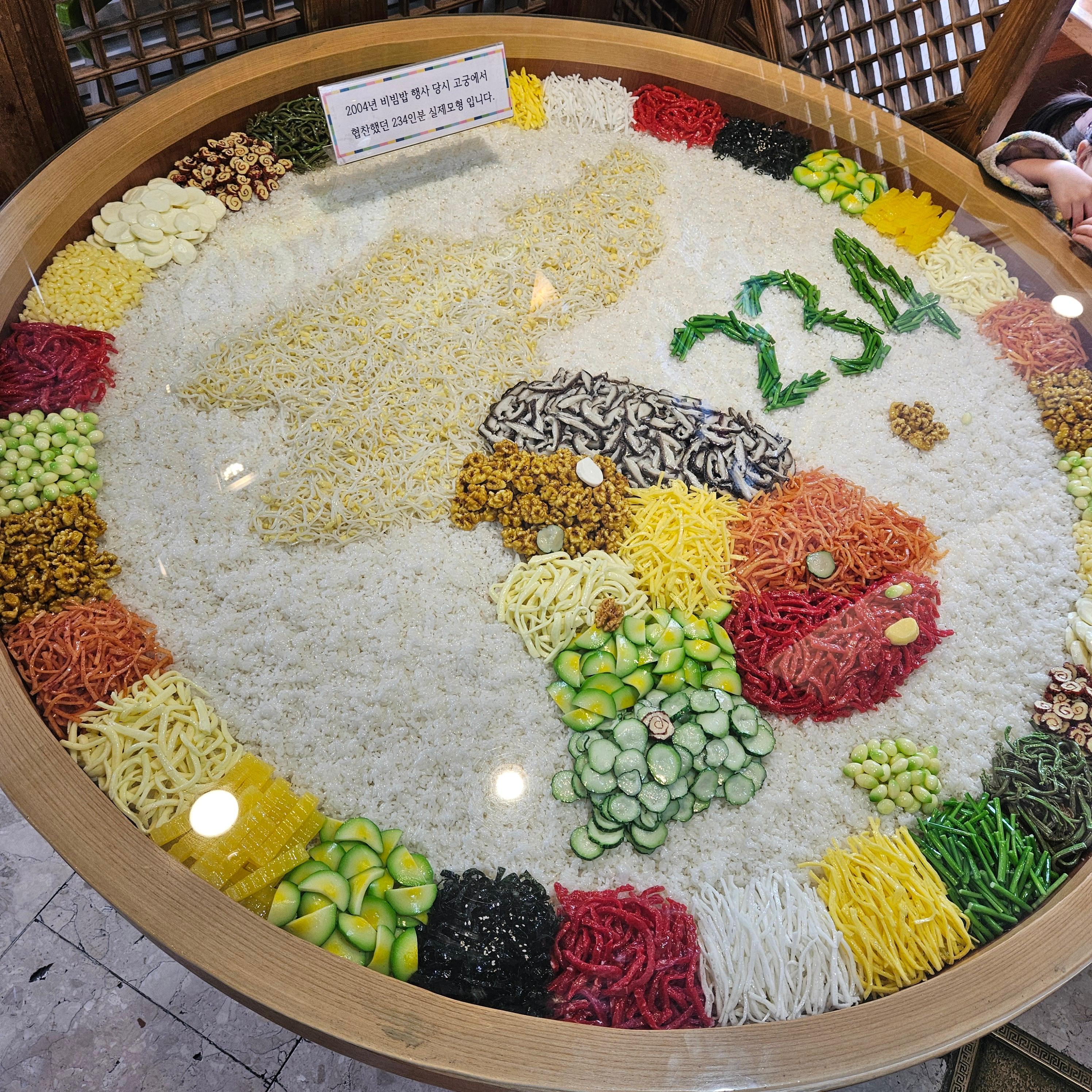 고궁에서 판매 중인 돌솥비빔밥, 전통비빔밥의 모형과 재료들 모형도 전시되어 있어요.