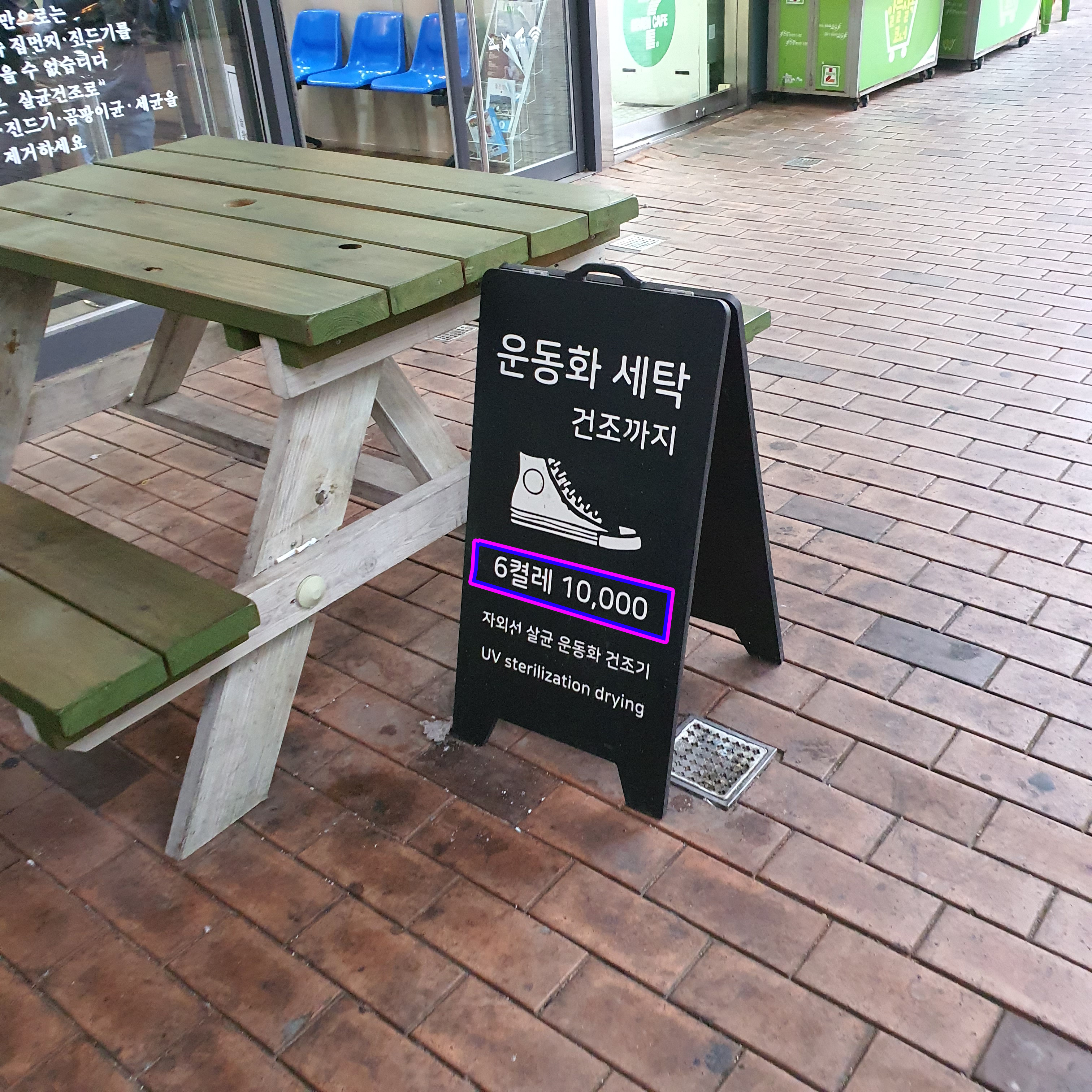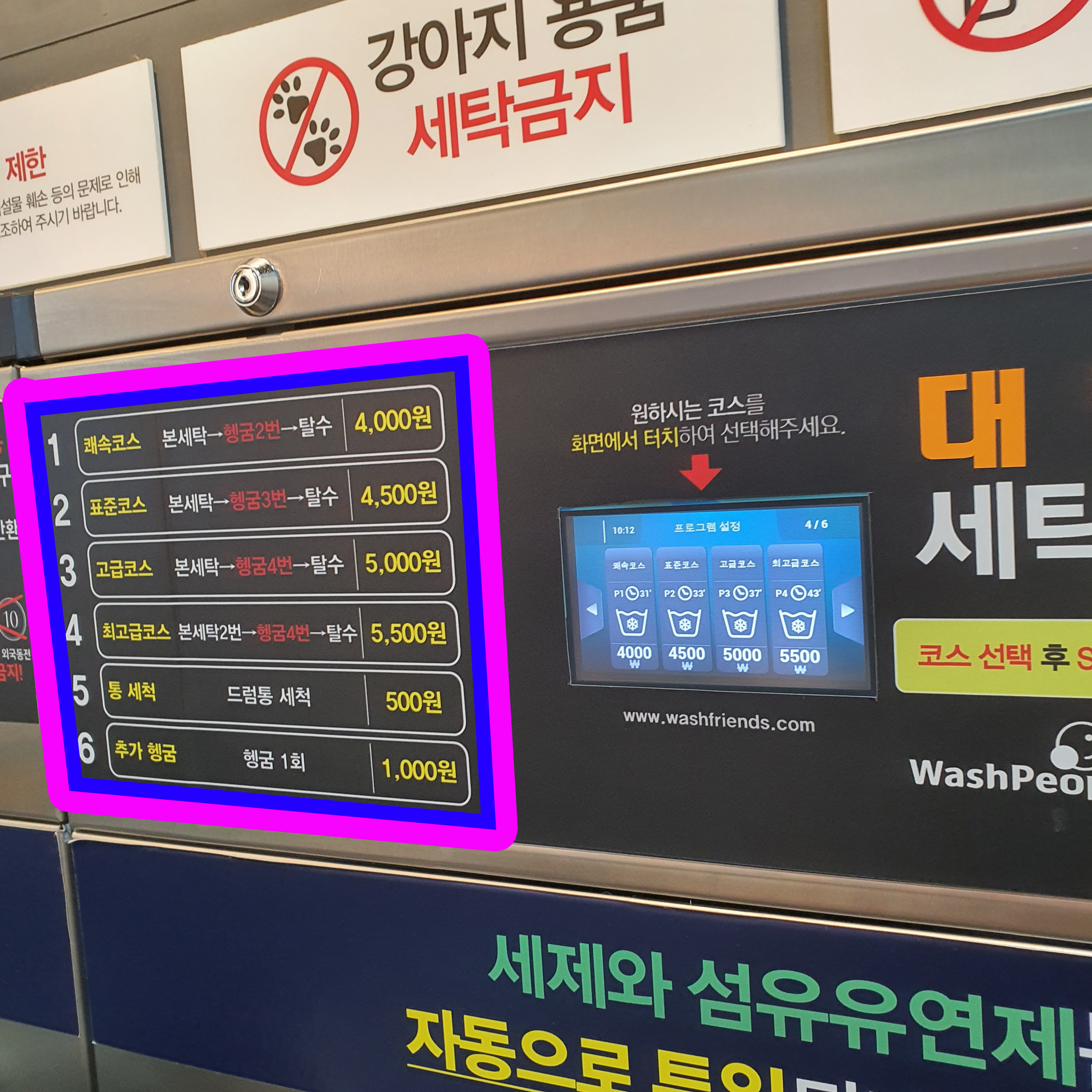 그리고 운동화 전용 세탁기도 있답니다! 최대 6켤레를 넣을 수 있고, 한번 세탁기를 돌릴 때마다 만원이에요.