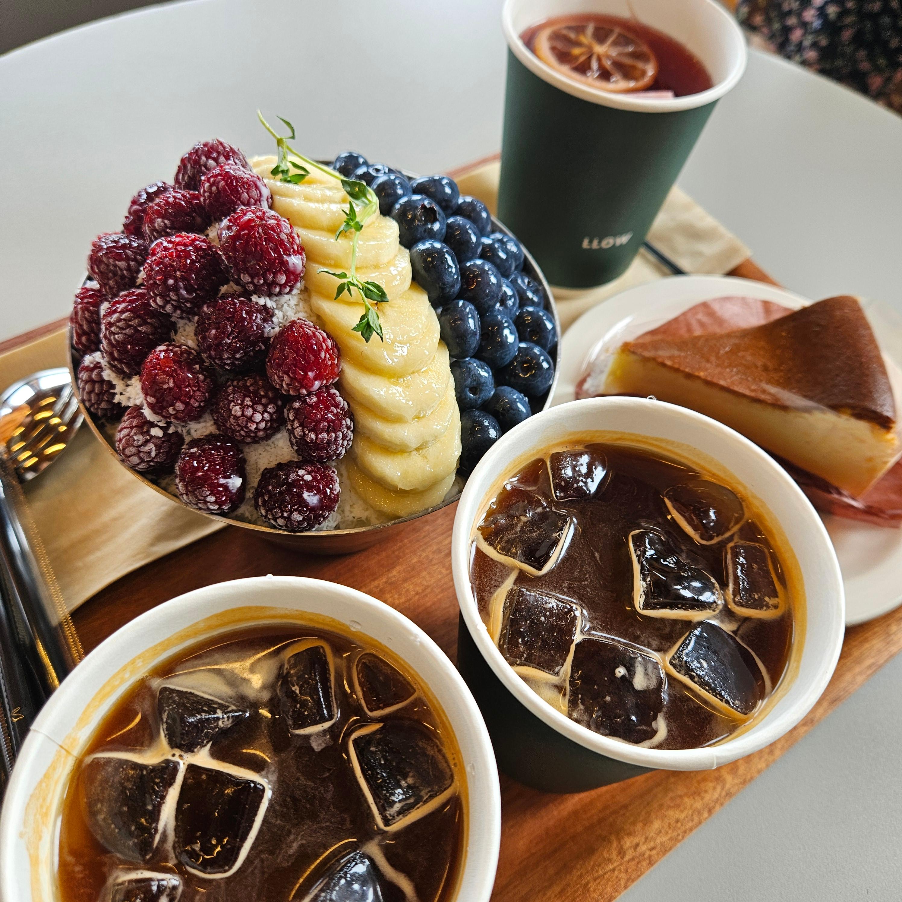참아서 더블베리 팥빙수(18,000원)와 바스크 치즈 케이크 (8,000원)