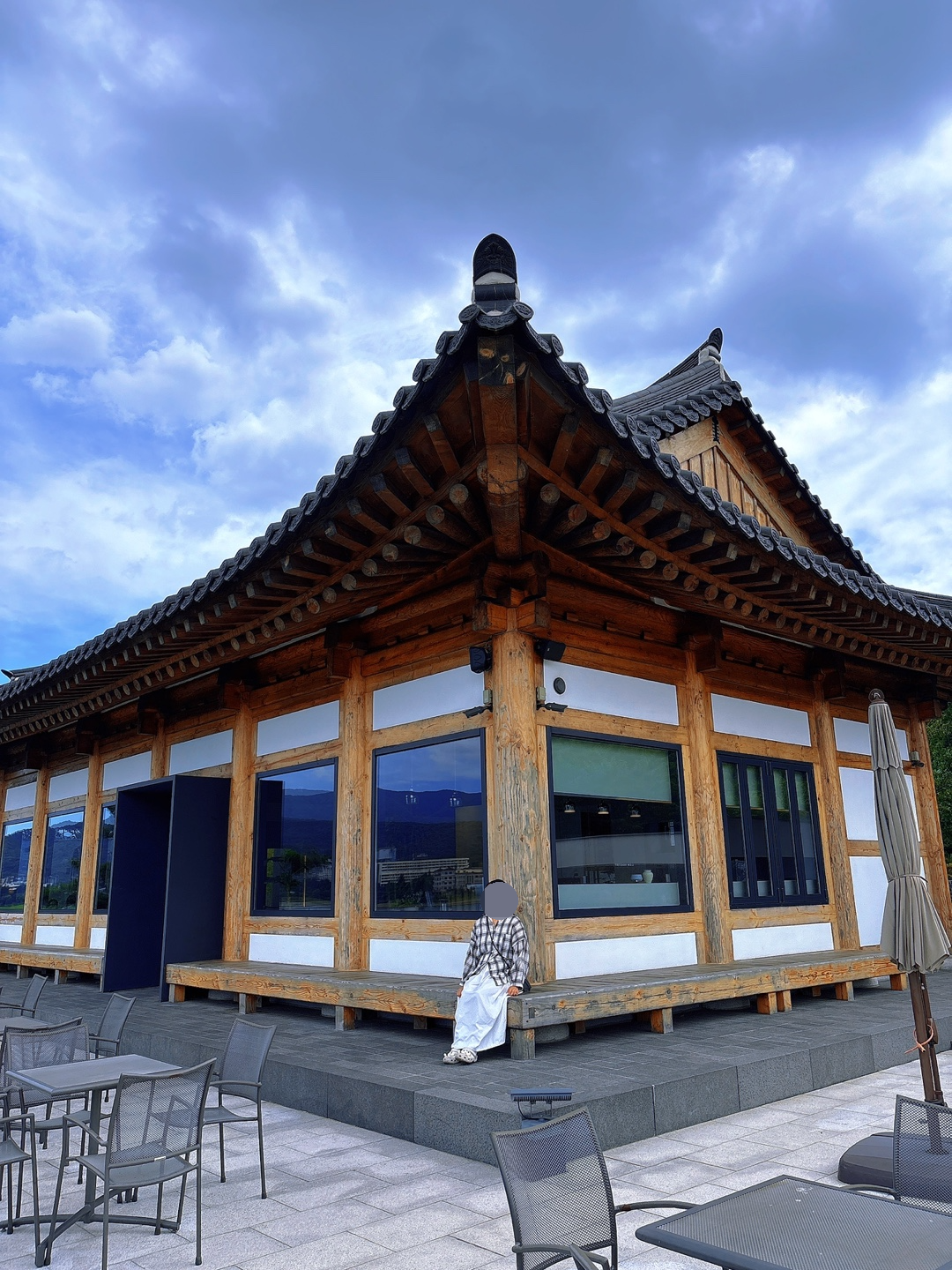 엘로우는 한옥과 현대가 어우러진 건축물로, 보문호를 한눈에 볼 수 있는 뷰 맛집 대형카페이다.
