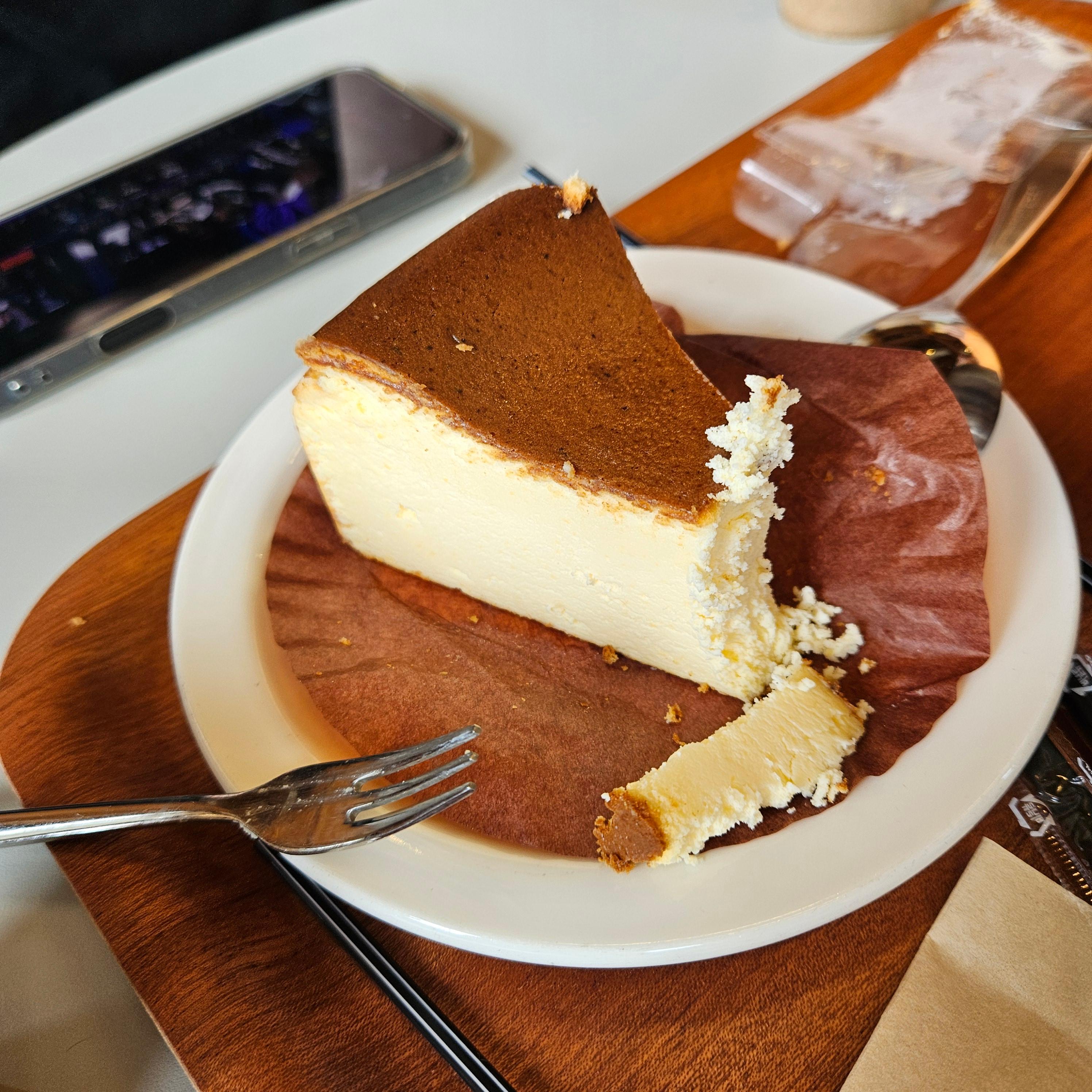 바스크 치즈 케이크는 적당히 꾸덕하고 부드러웠다. 다행히 맛있었습니다요...