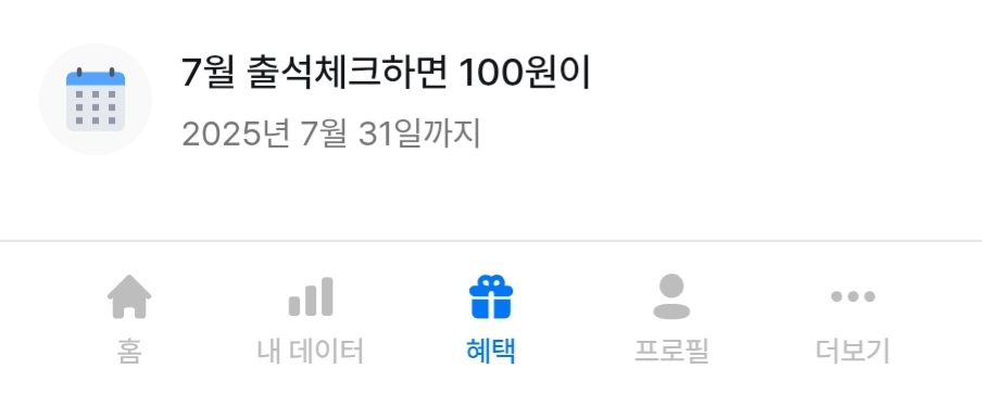 제일 쉬운 건 출석체크 이벤트! 하루에 100원씩 적립해 준다.