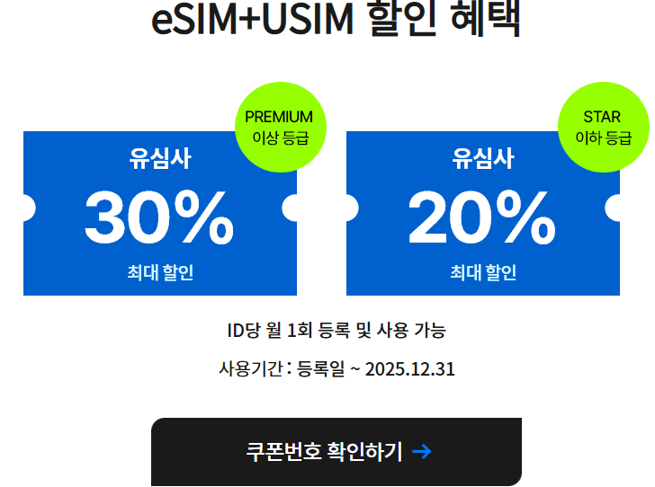 롯데면세점에서 유심사 할인쿠폰을 뿌리고 있다. 사용기간은 2025년 12월 31일까지!