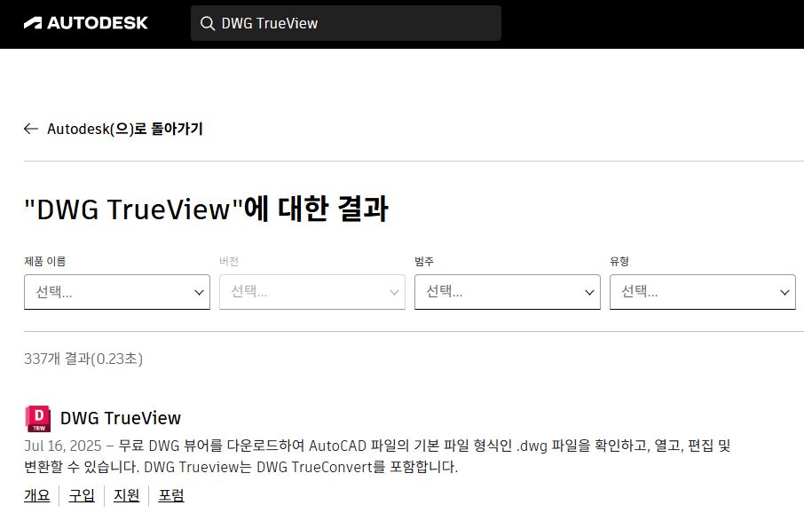 상단 검색창에 'view'를 타이핑하면 연관검색에 DWG TrueView가 뜨는데 그걸 클릭한다.