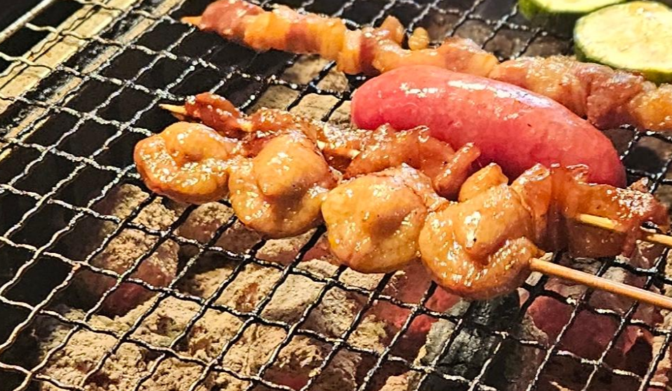 원하는 꼬지를 스테인리스 그릇에 담으면 숯불에 바로 구워주신다.