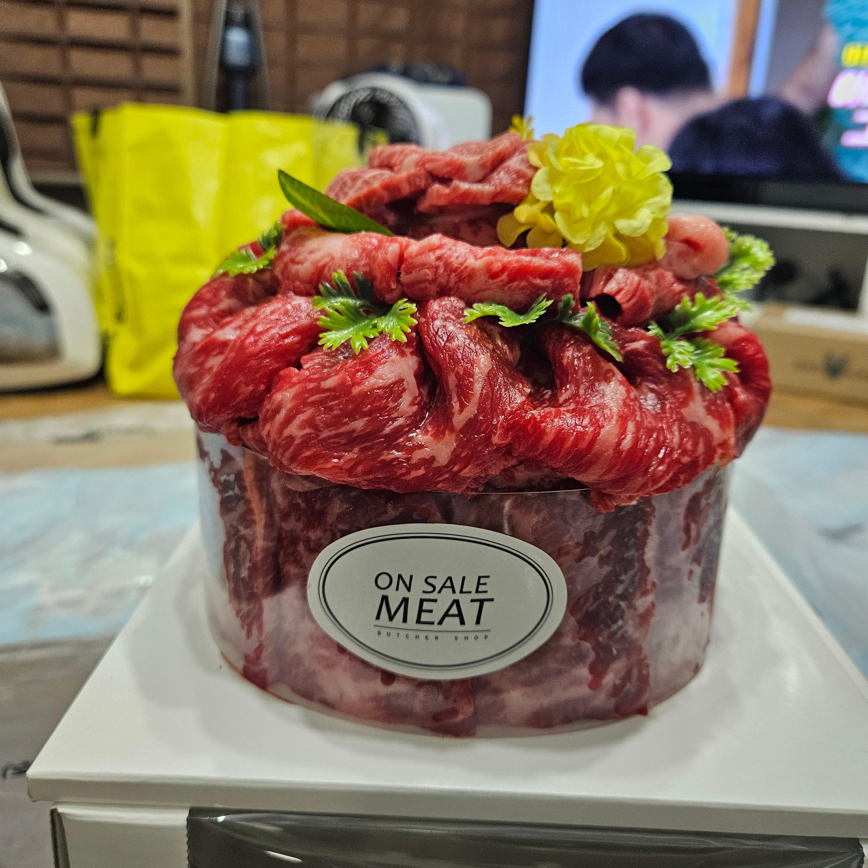 한우 케이크를 받아서 집에 왔는데, 정말 케이크처럼 케이크 박스에 넣어 주세요.ㅋㅋㅋ