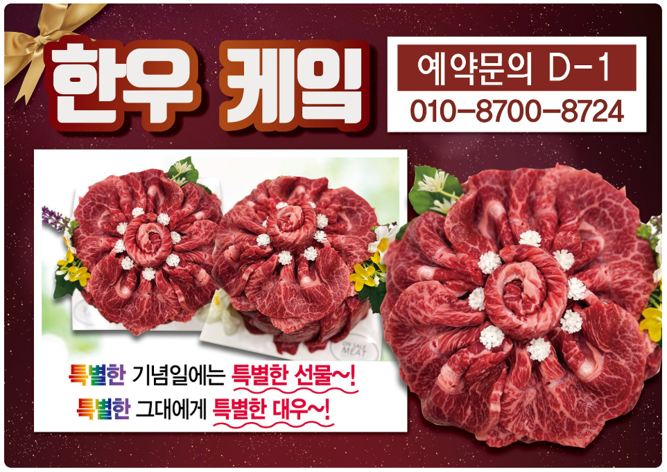 그냥 한우를 따로 사 먹는 것보다 이렇게 특별하게 한우 케이크로 준비하니까 함께 먹는 사람들도 신기해하고, 부모님도 더 좋아하시더라고요. 그냥 고기도 좋아하셨겠지만, 케이크 모양 한우니까 더 좋아하셨던 것 같아요.ㅋㅋㅋ