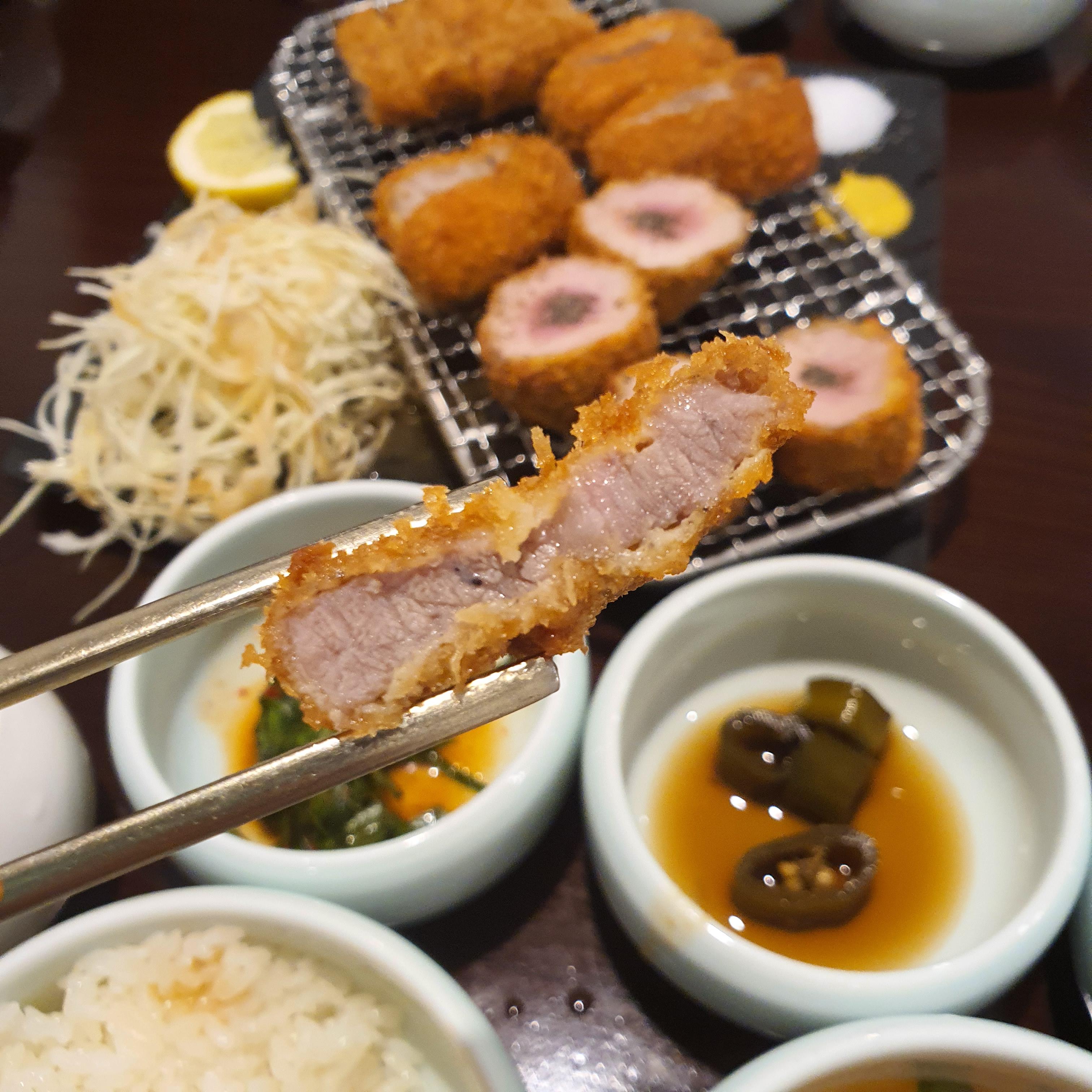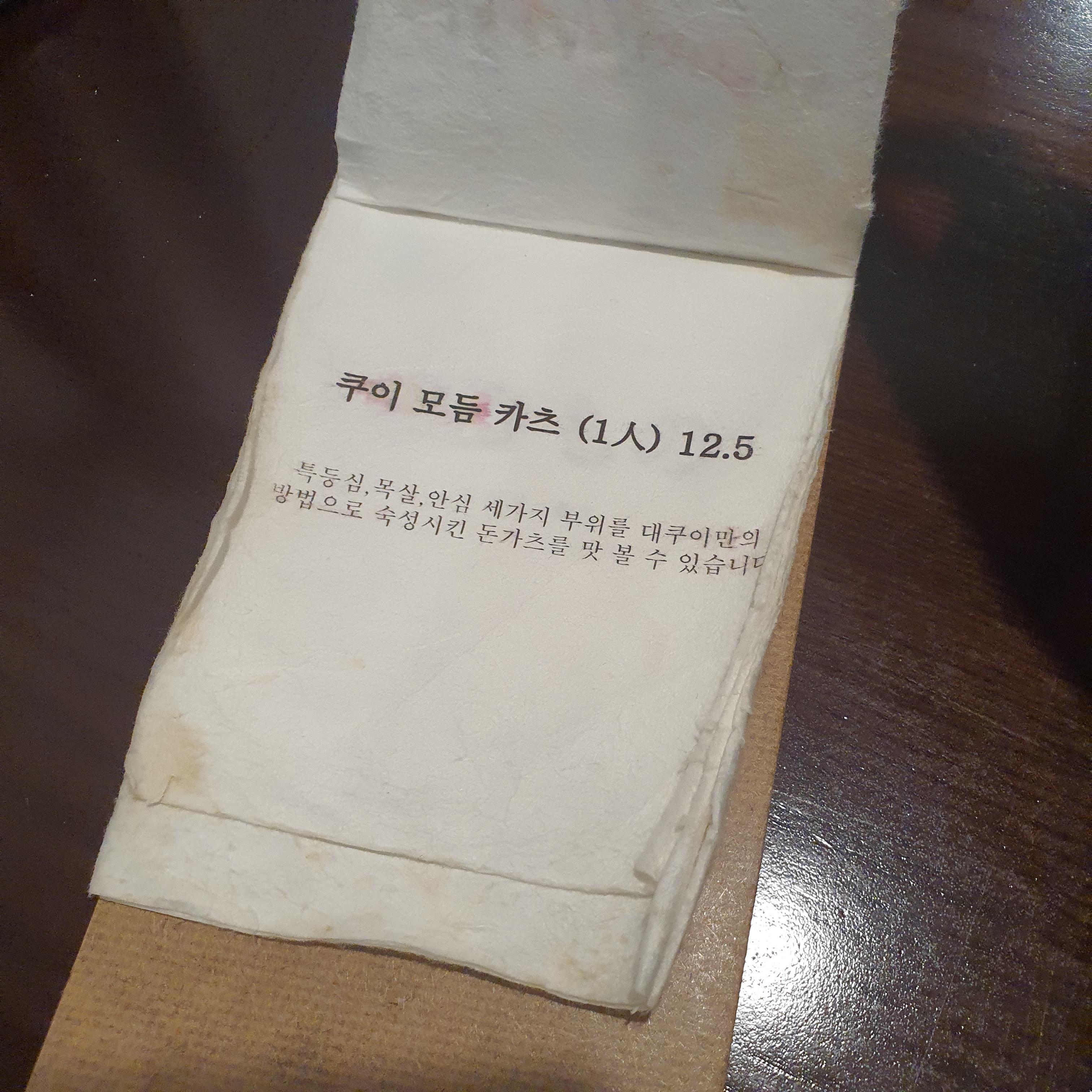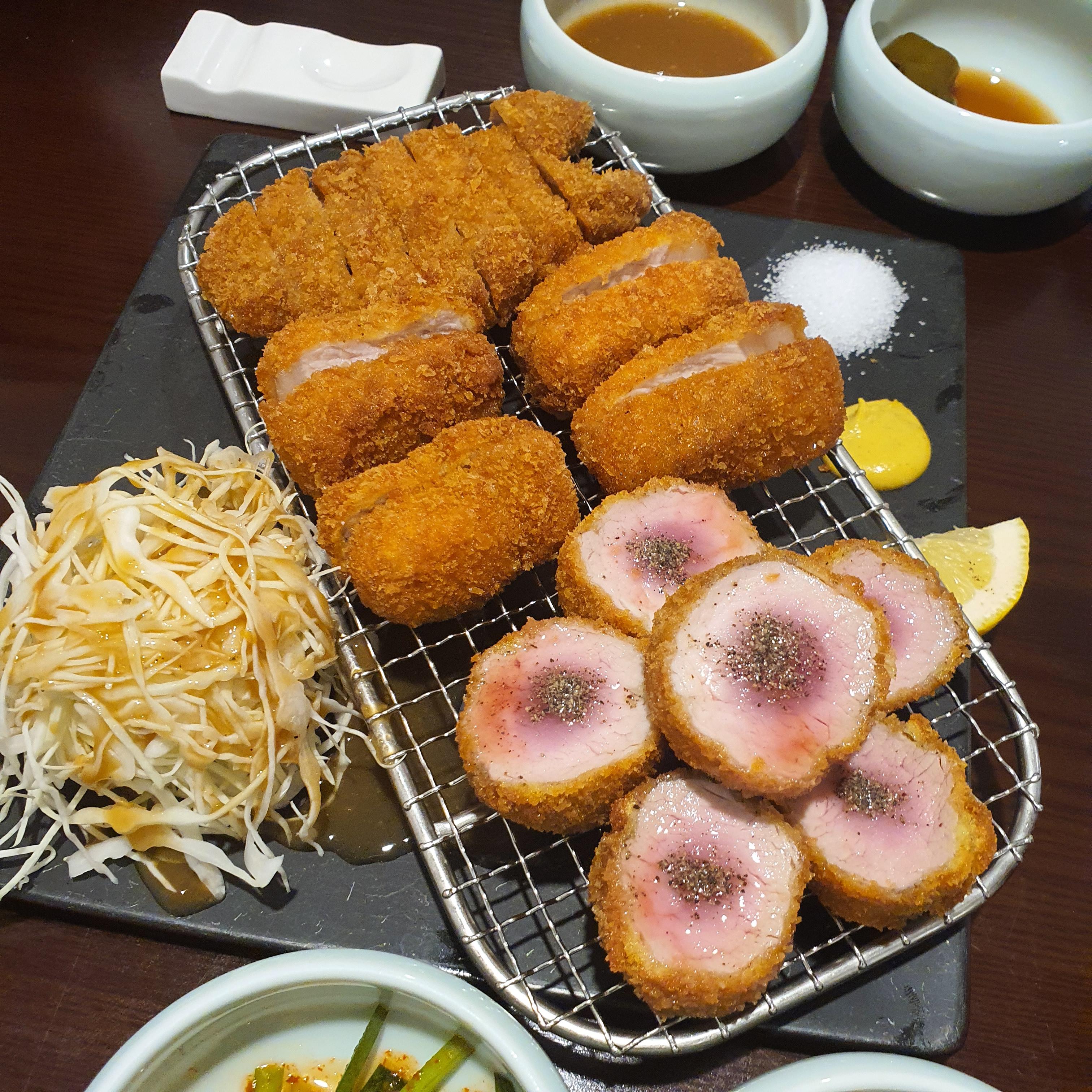 그리고 조금 기다리니 메인 메뉴 쿠이 모듬 카츠를 가져다주셨어요.