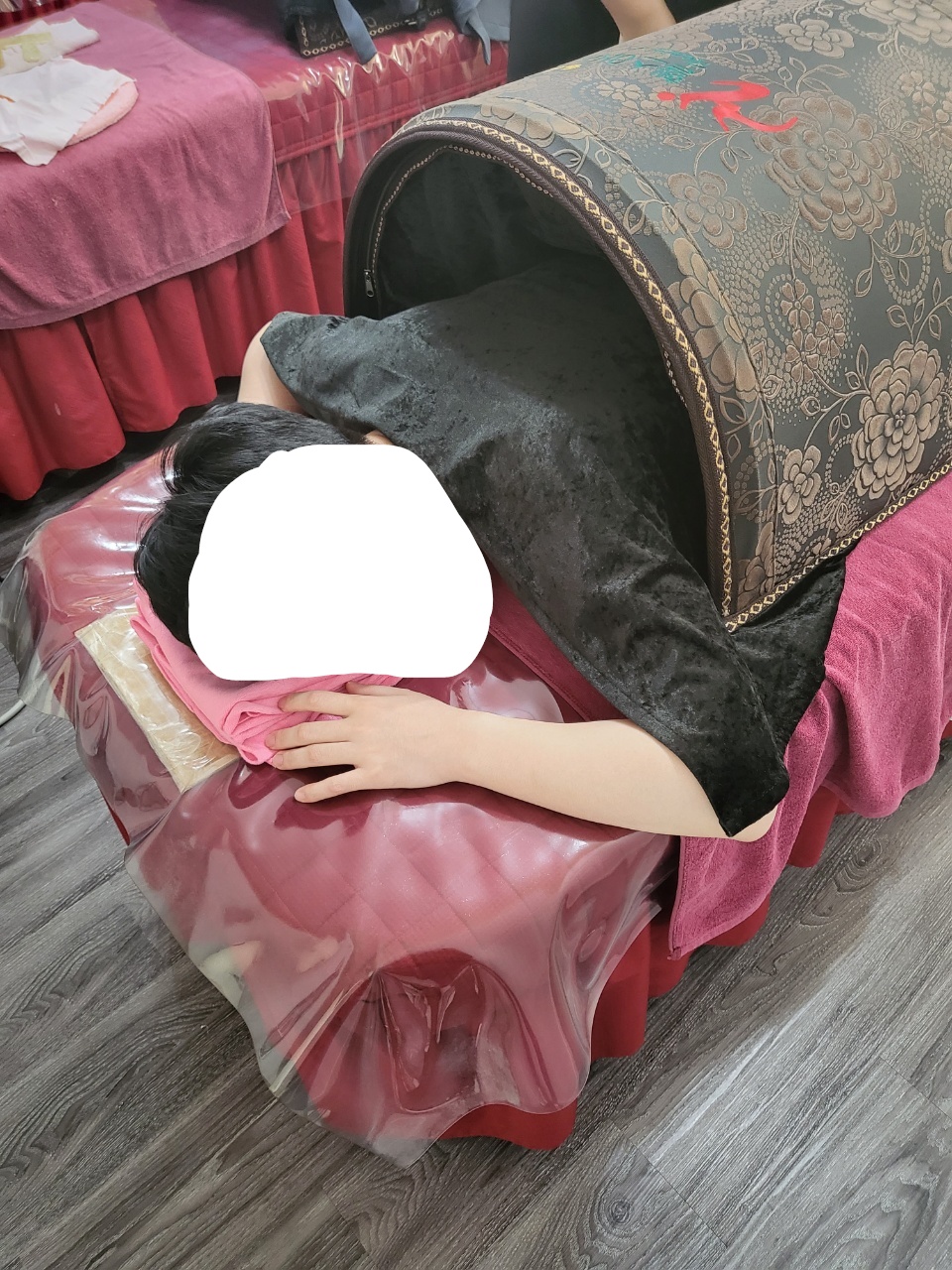 하체관리부터 받았는데 하체 관리할 때 상체는 돔으로 관리를 해주는데 뜨끈뜨끈하고 땀을 쫙~ 뺄 수 있답니다.