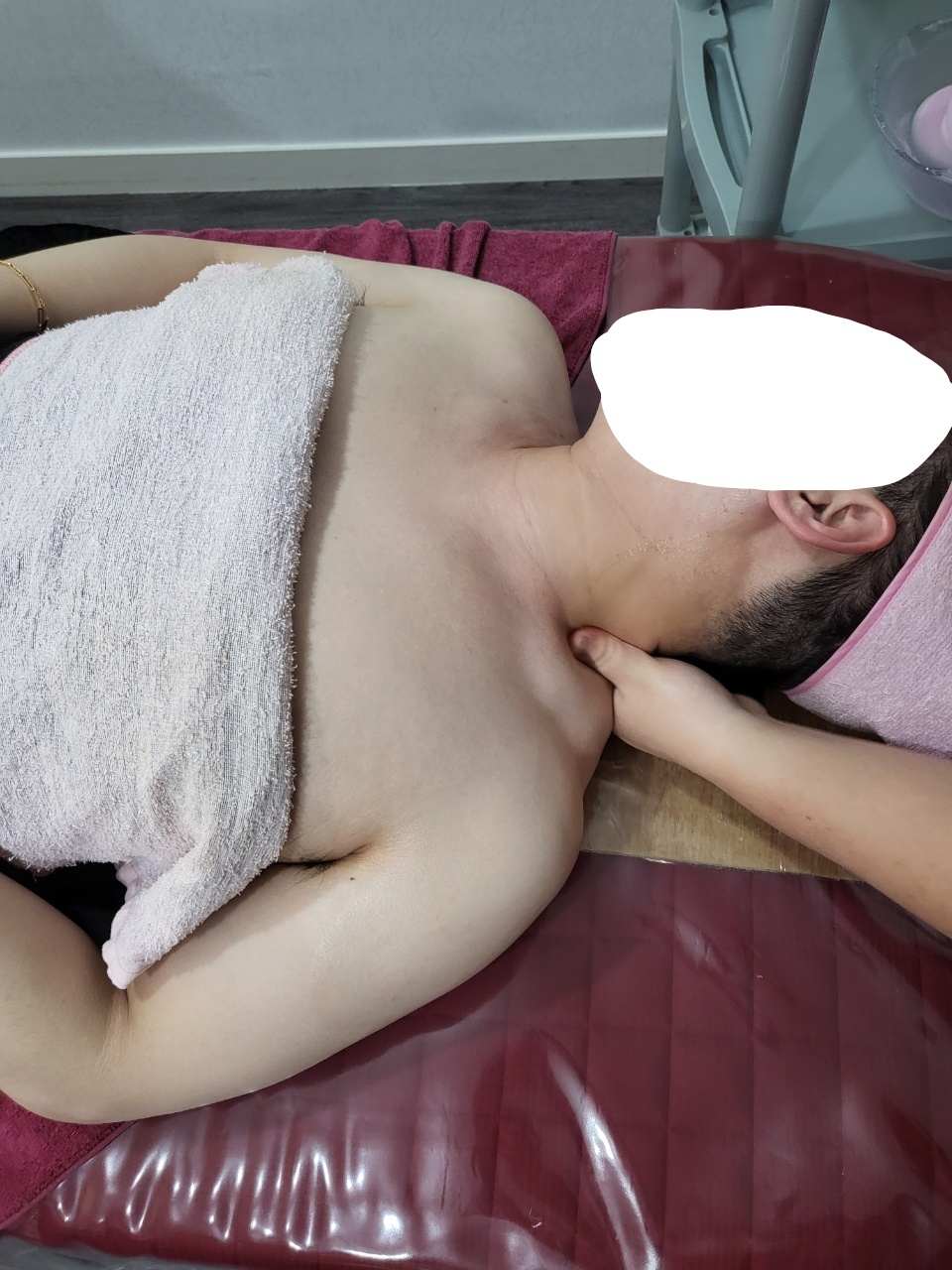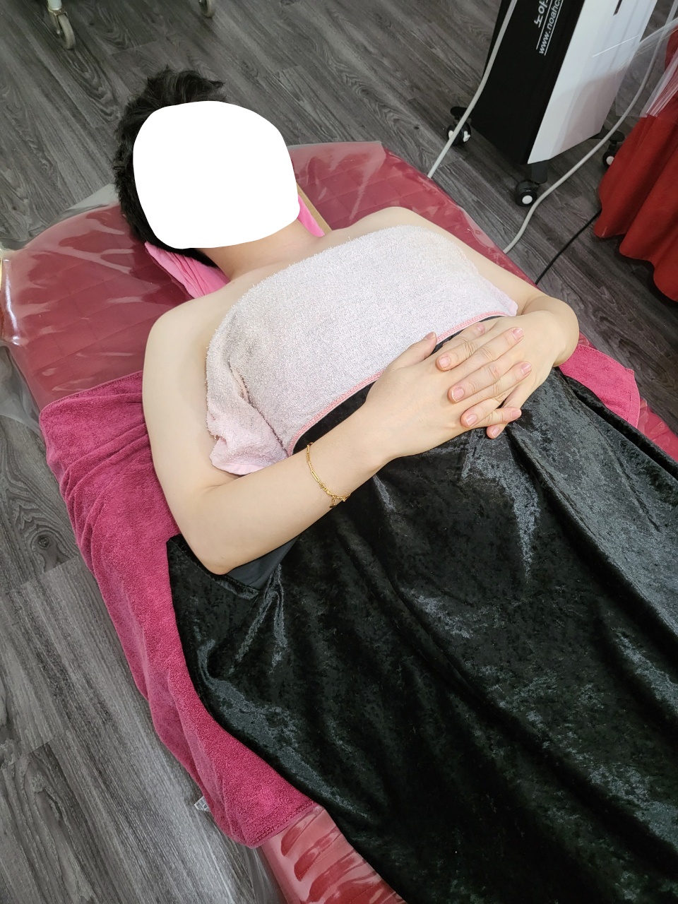하체관리 후에 얼굴관리받기 전 얌전히 누워있는 ㅎㅎㅎ