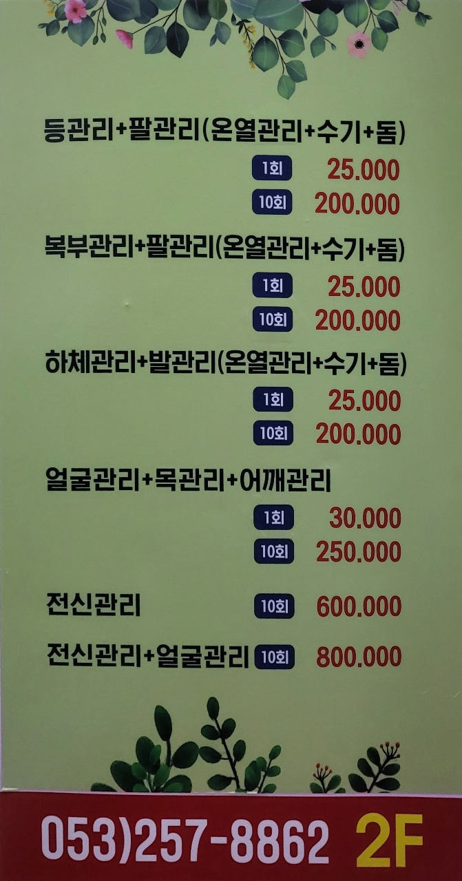 마사지 가격표도 첨부해드릴게요!