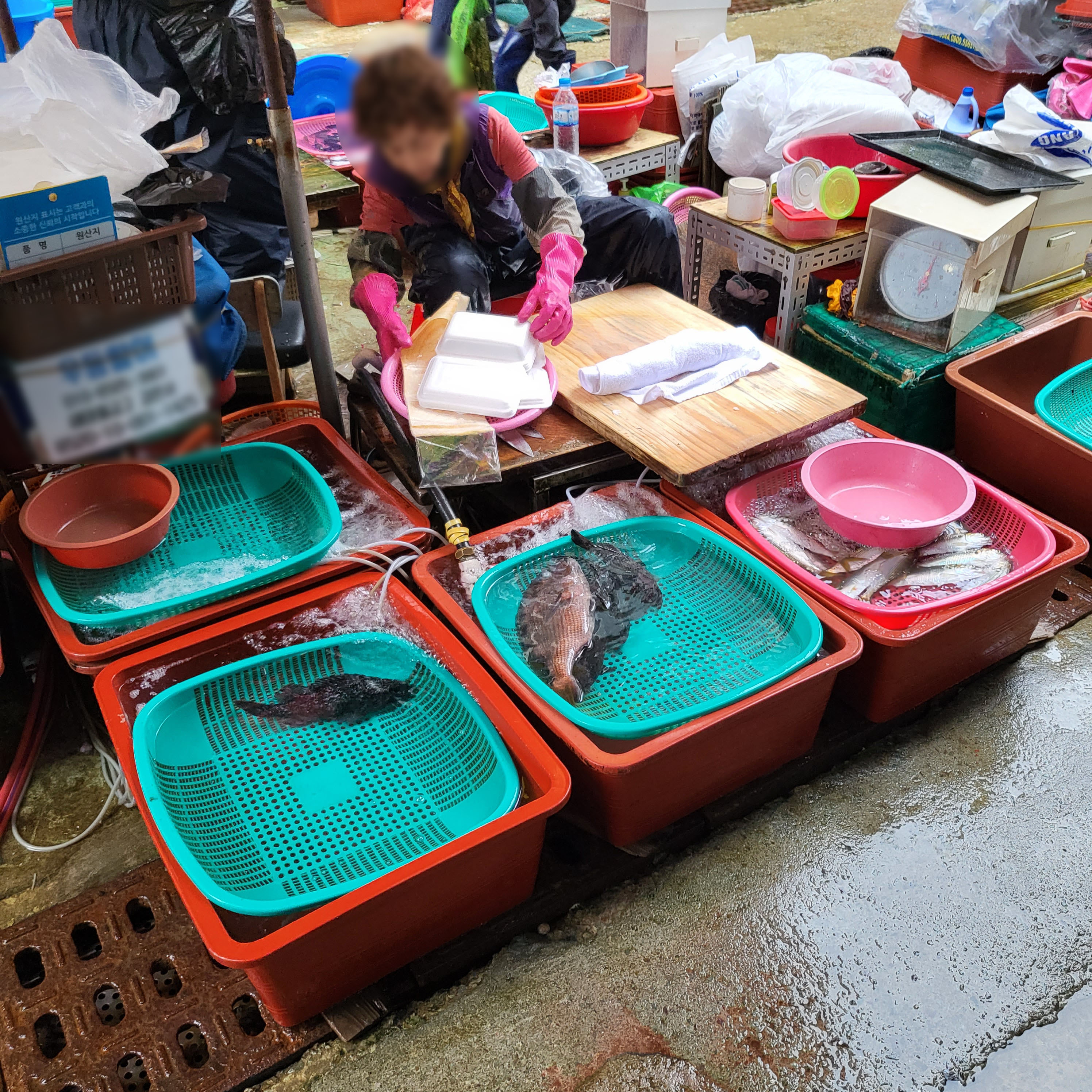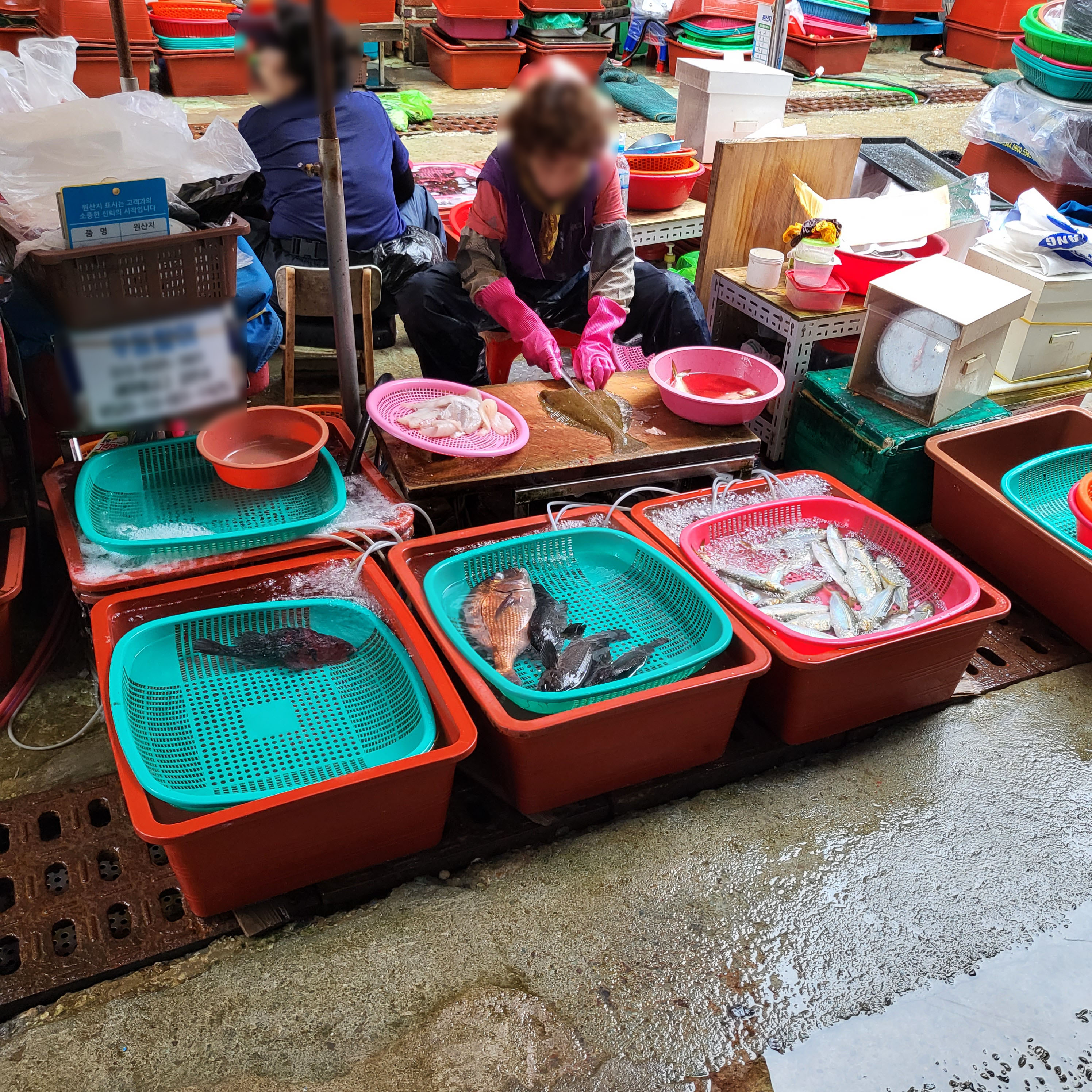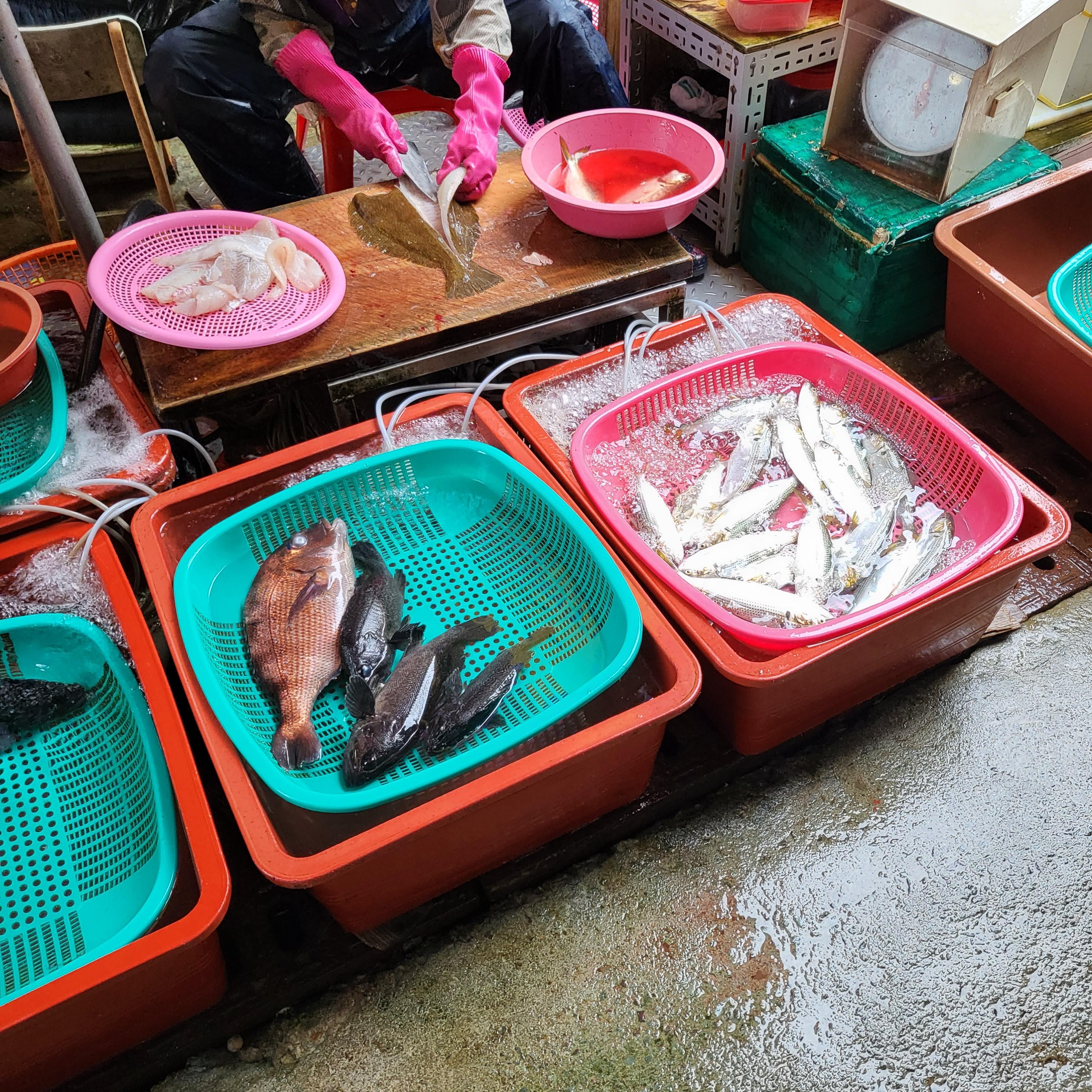 들어가면 사장님들이 고무대야에 횟감들을 넣어놓고 다들 앉아계시는데 우선 먼저 한 바퀴 둘러보세요.