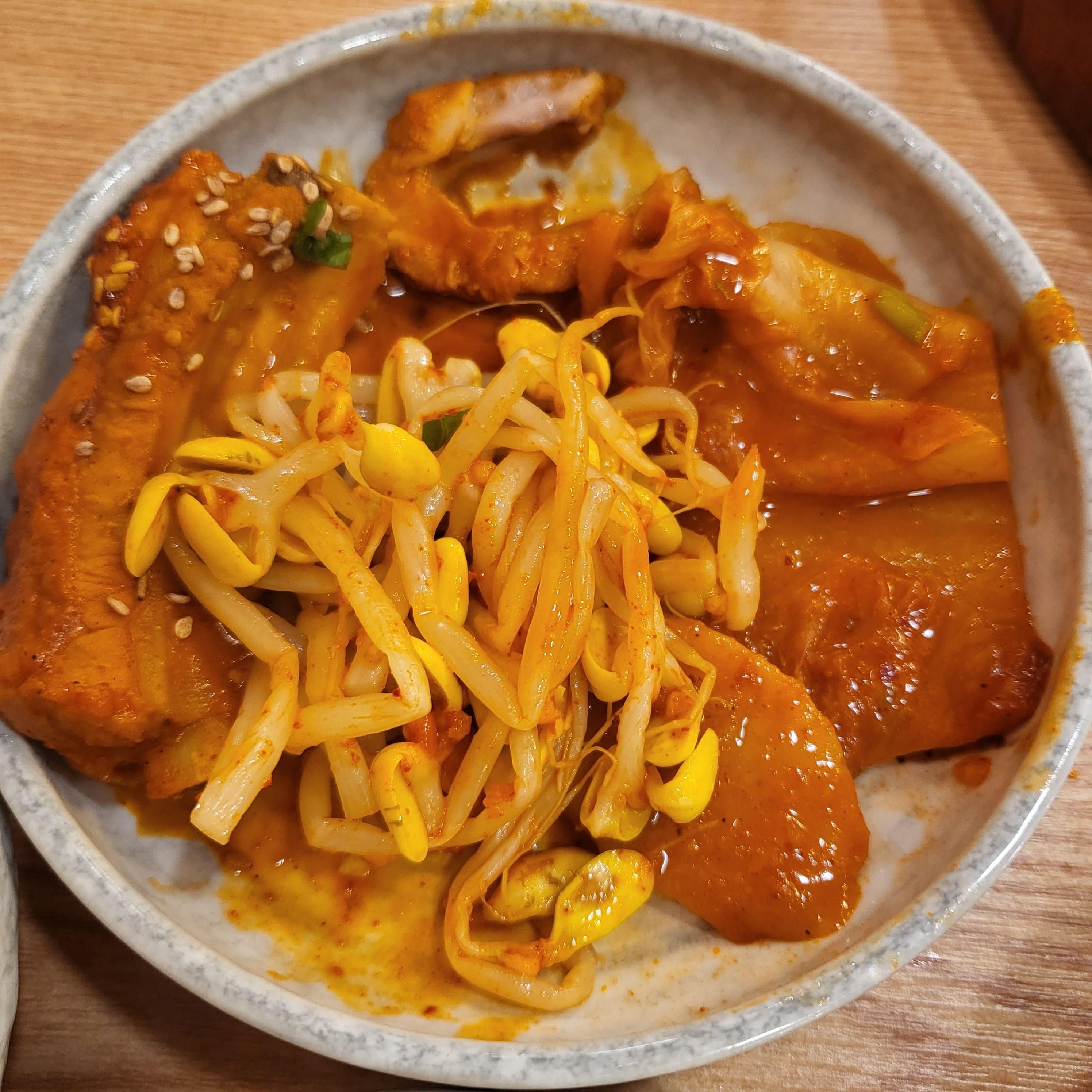 같이 얹어진 콩나물과 함께 냐아암 김치도 함께 냐아암