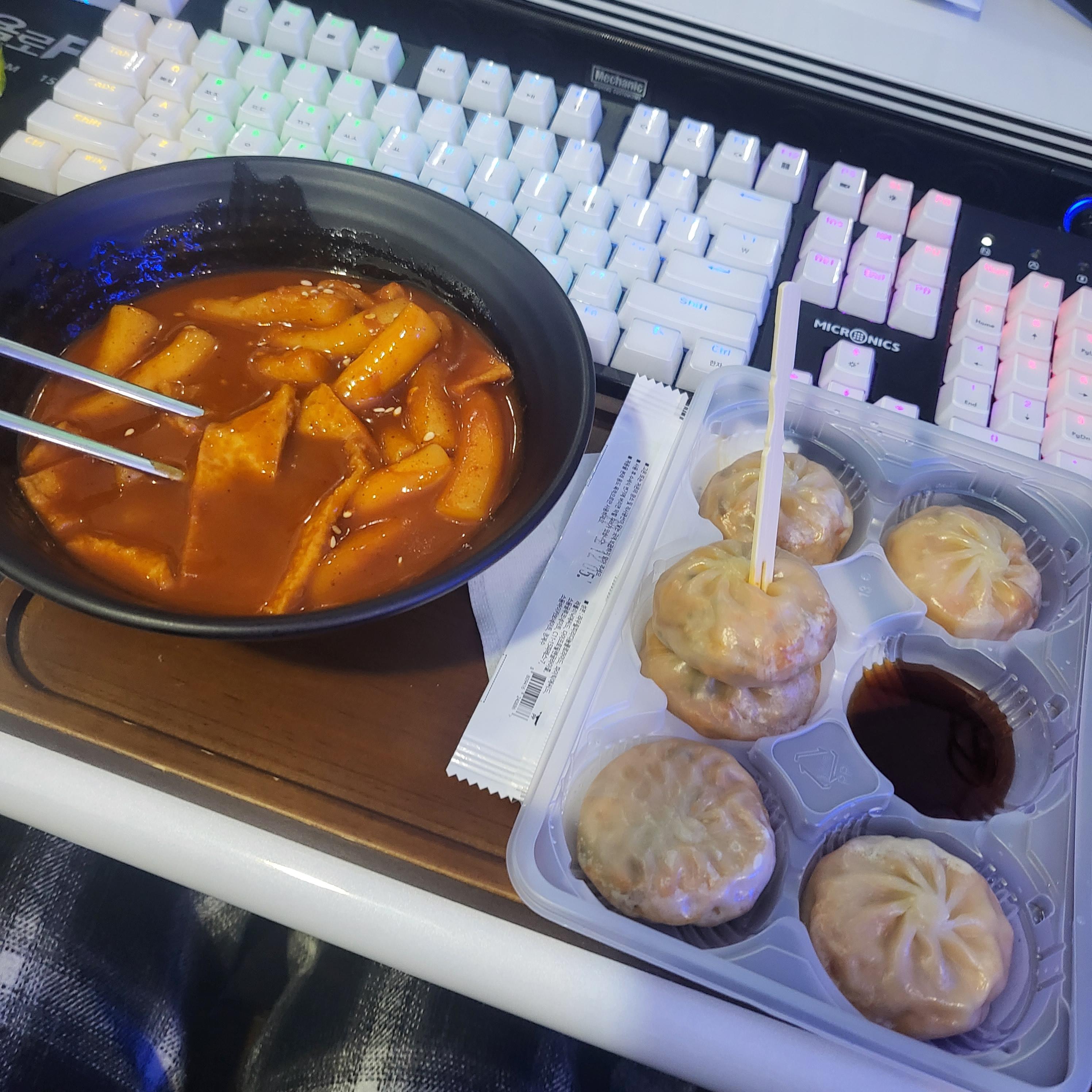 신천떡볶이 + 만두세트, 소떡소떡을 시켰어요.