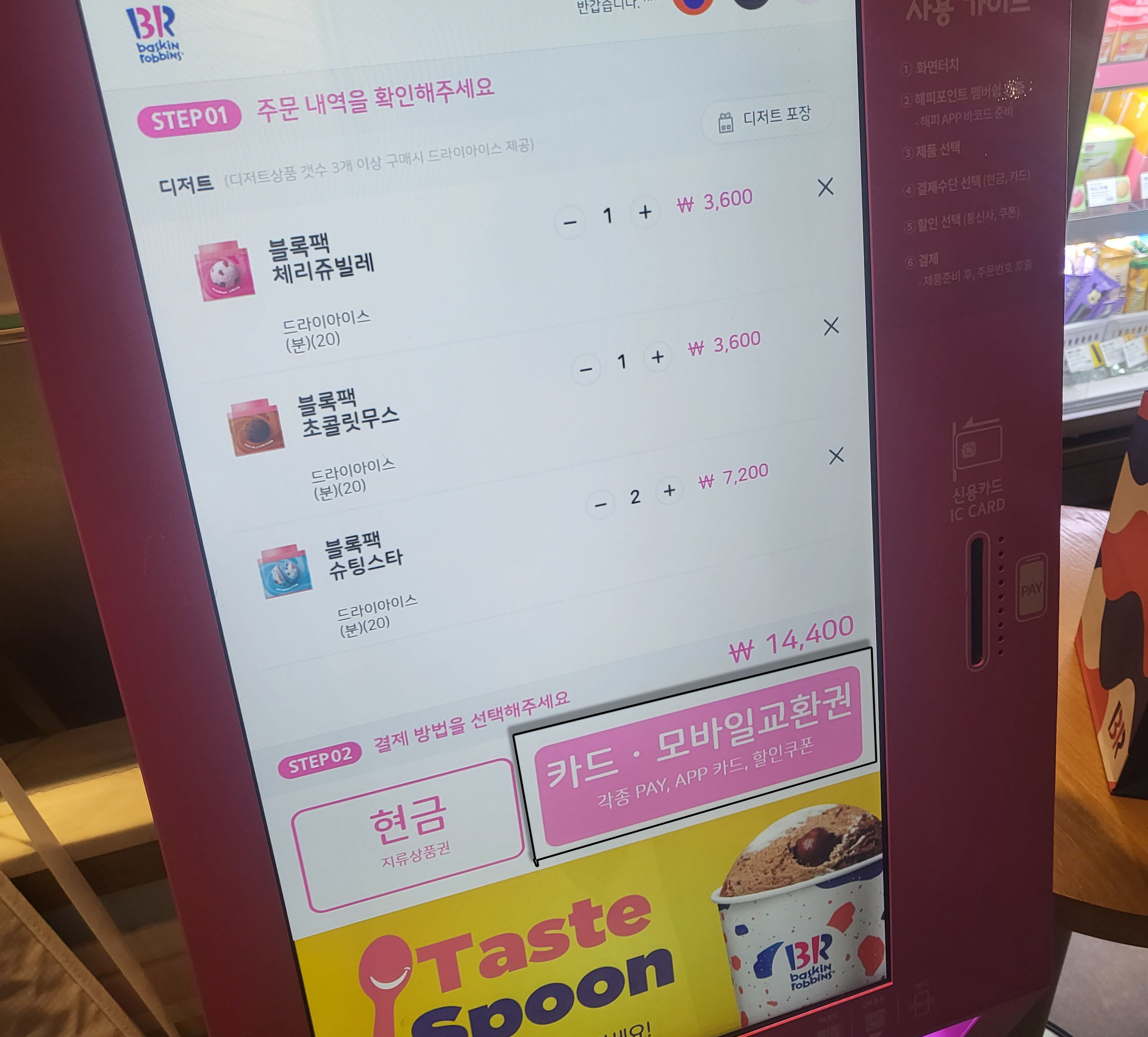 배스킨라빈스도 요즘 다 키오스크로 바뀌는 거 같더라고요. 저는 직원분께 주문하는 게 편한데~ ㅠㅠ