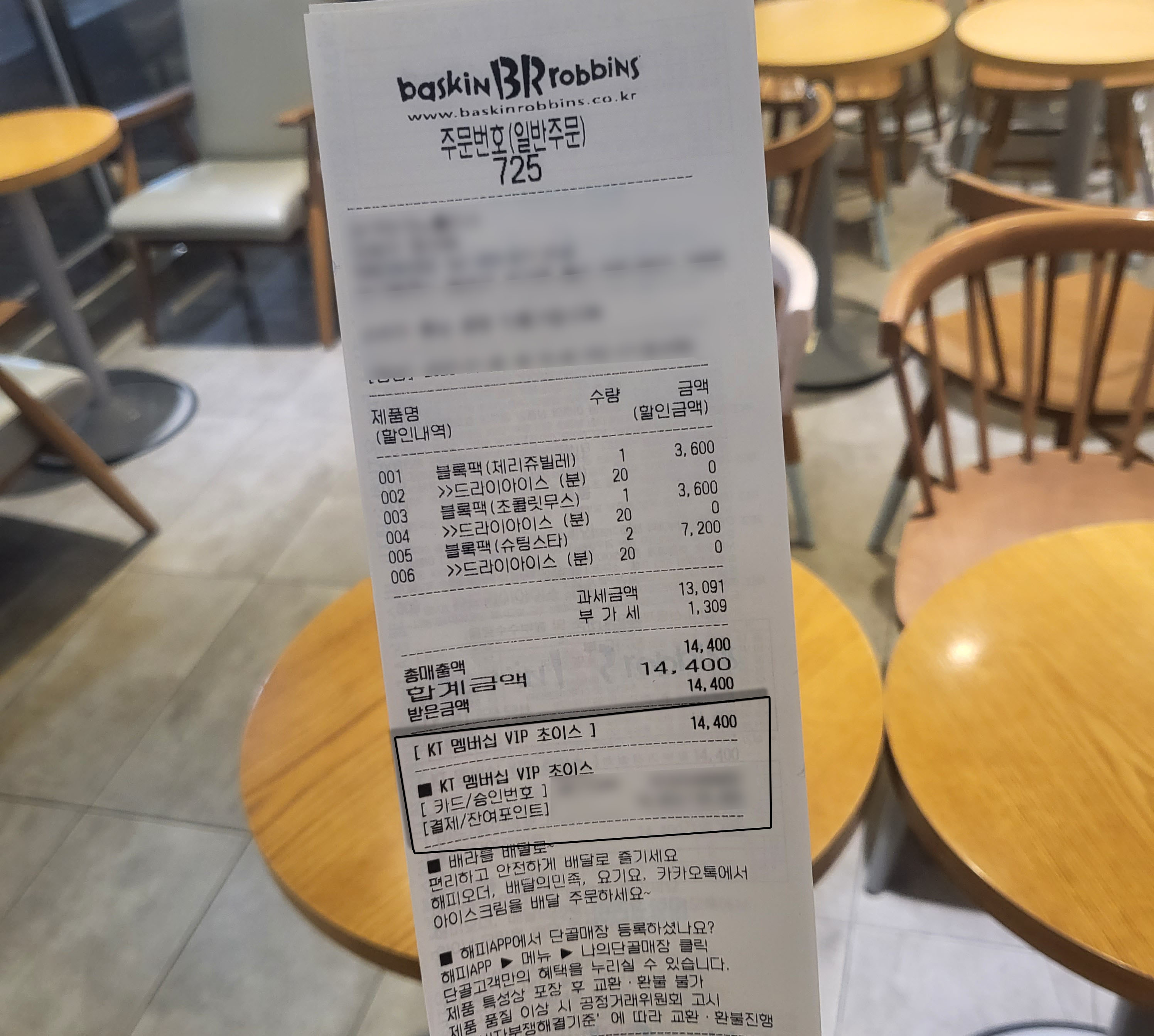 영수증에는 KT 멤버십 VIP 초이스라고 나오네요?! KT 멤버십 VVIP 초이스인데 말이에요.